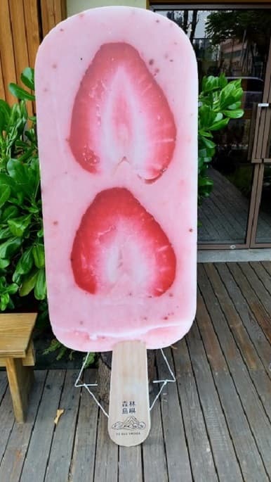 草莓冰棒吸引不少人停下腳步拍照,但吃不到..因為店家不是賣吃的..殘念!