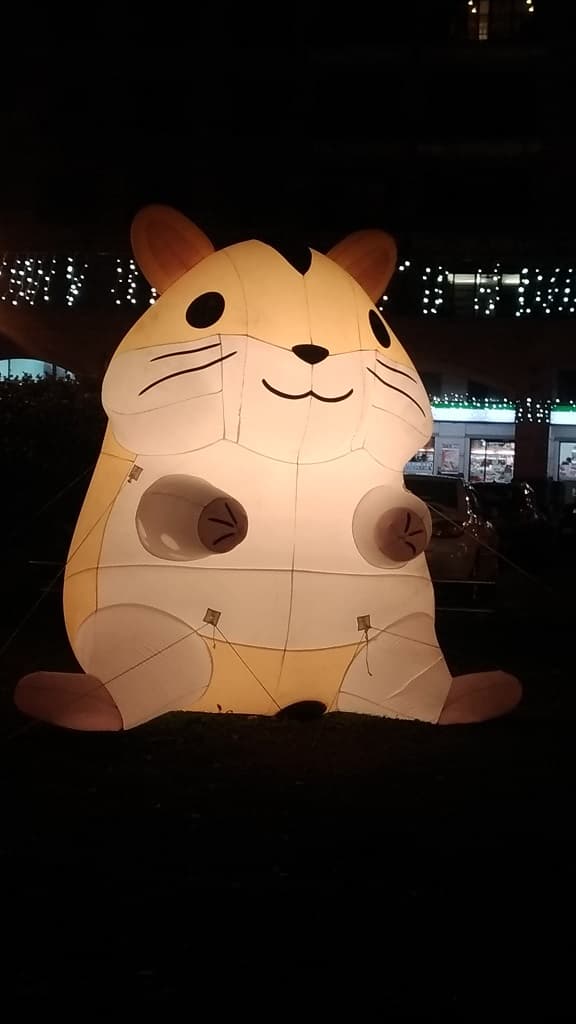 豎立四隻高達2.5-7公尺的充氣造型動物偶「小倉鼠」