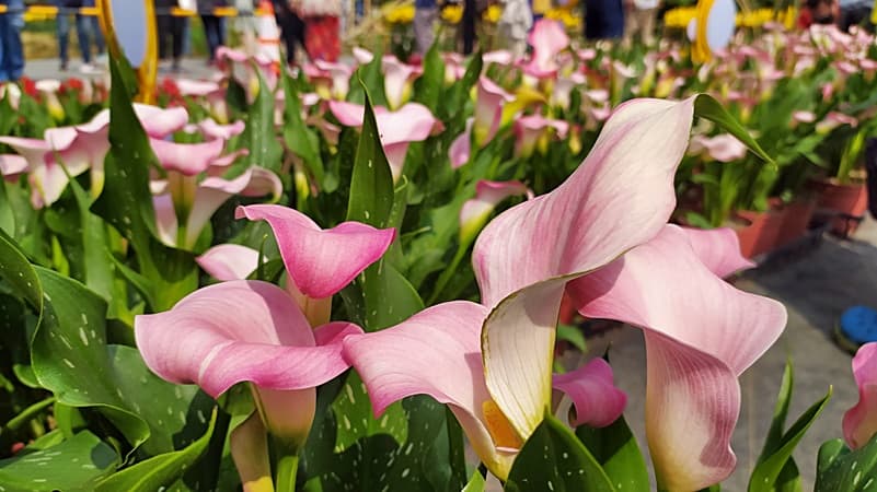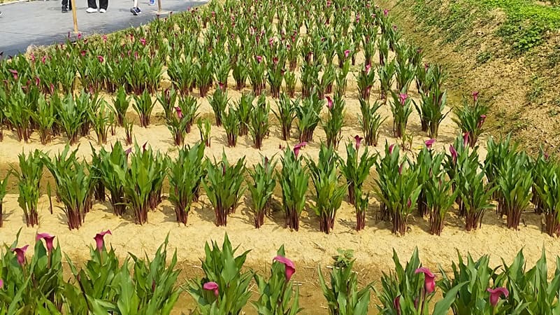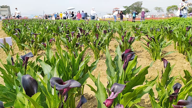 在好天氣的陪襯下, 不同顏色的海芋更顯得亮眼! 整片的海芋花海展現, 讓到訪的遊客欣喜若狂!