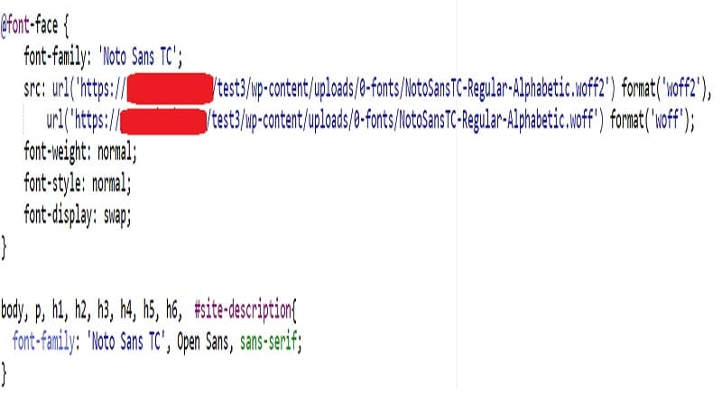 url(‘https://yourdomain.com or CDN URL/wp-content/uploads/0-fonts/NotoSerifTC-ExtraLight-Alphabetic.woff’) format(‘woff’);