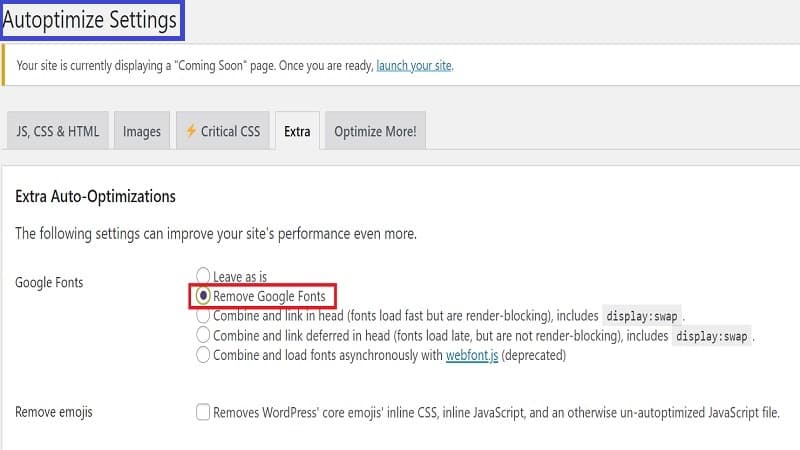 Autoptimize-點選外掛Settings–>Extra, 勾選Remove Google Fonts就可以了.