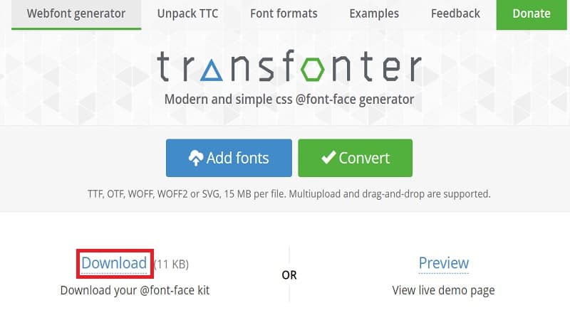 點選下方的連結, 就可以轉換WOFF/WOFF2的格式了.