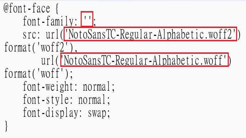 font-weight / font-style /font-display 這三個就照原本的stylesheet.css裡的內容, 直接複製貼上即可.