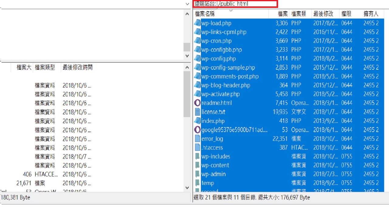 1.利用Filezilla軟体把遠端站台public_html\ 這個資料中全部內容複製下載到自己的電腦裡.