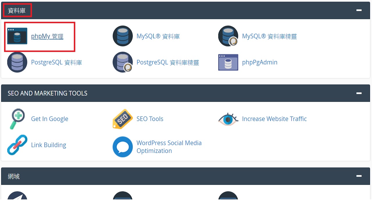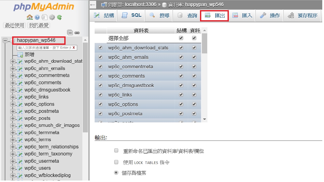1.新主機cPanel中的[phpMy管理]\資料庫\結構\勾選[全選]