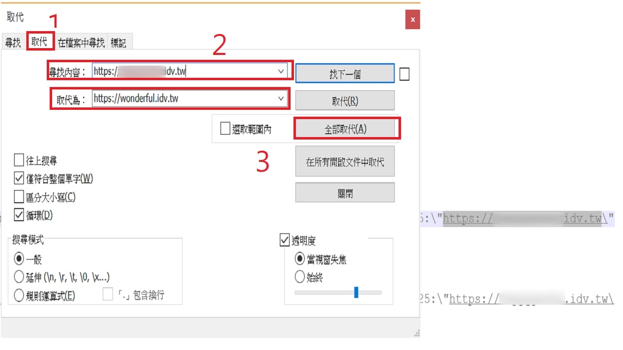 3.利用NotePad++ 或其他編輯軟體去修改資料庫中的原先網址.(如果網址也有變更的話.)