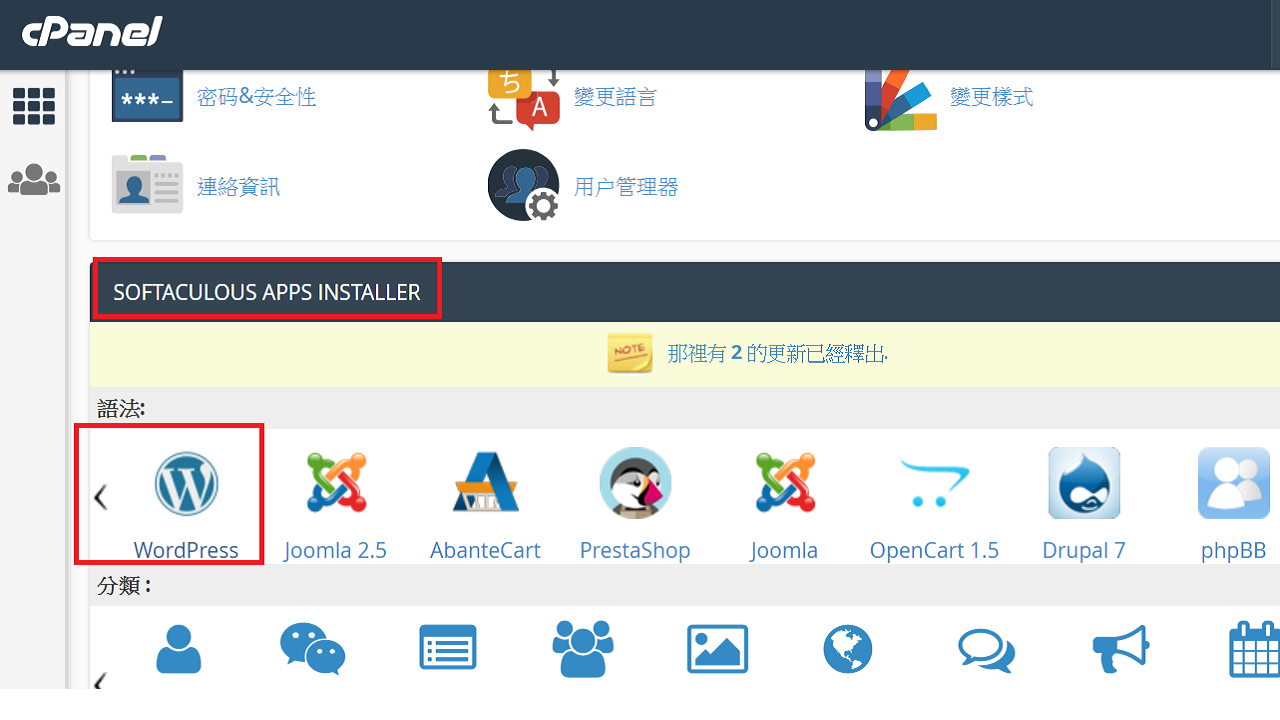 1.進入cPanel環境, 先利用應用程式安裝WordPress, 指定新的網址名稱,安裝好之後, 資料庫也會同時建立好, 包含新使用者.(新網址的轉換後面會再說明之!)