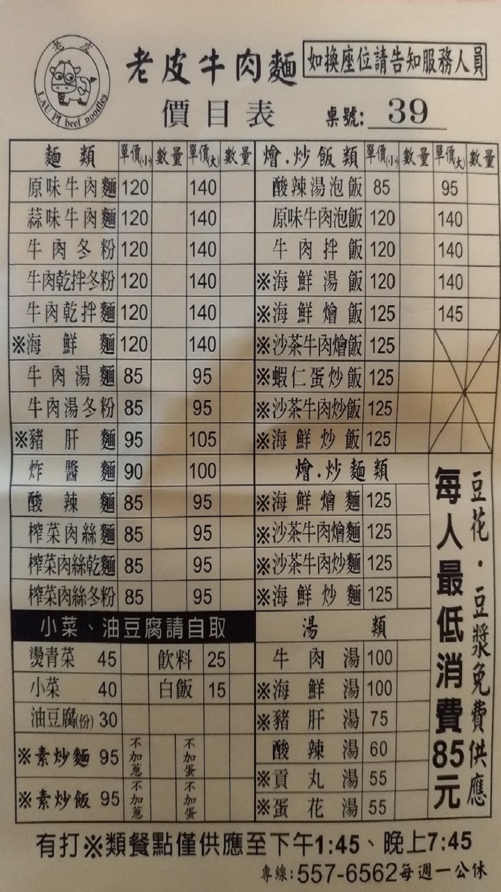 但需最低消85/人,才能有此好康哦! 不單只是賣牛肉麵,也有其他的麵食/燴飯/炒飯類等.
