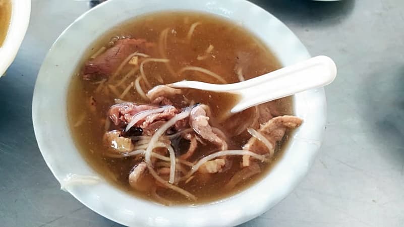 鴨肉先與蒜頭、洋蔥拌炒過, 以去掉腥味,再加上荀絲等製出美味鮮甜的羹湯! 湯頭味道夠濃郁的蒜頭味以及洋蔥的甜味, 加上麵量也不少, 就變成一碗便宜又好吃的鴨肉羹麵!