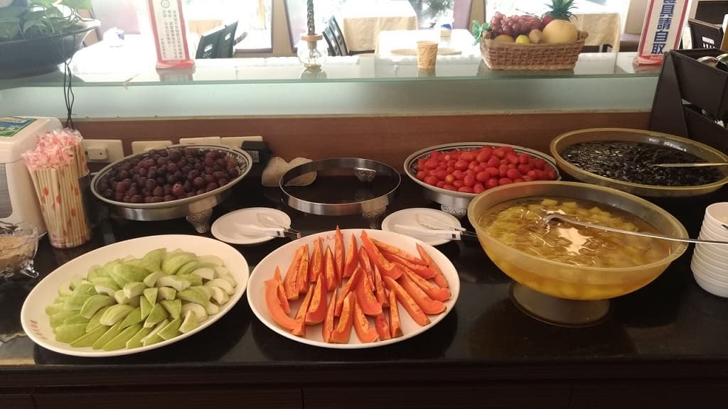 這個就是最熱門的水果與甜食湯區了, 冬天會有熱湯喔.水果會隨著當季而改變….
