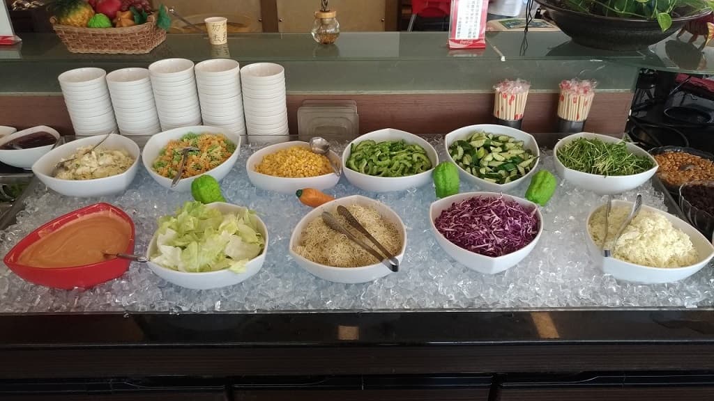 沙拉吧的種類雖然不多,但也不錯了…該有的都有.