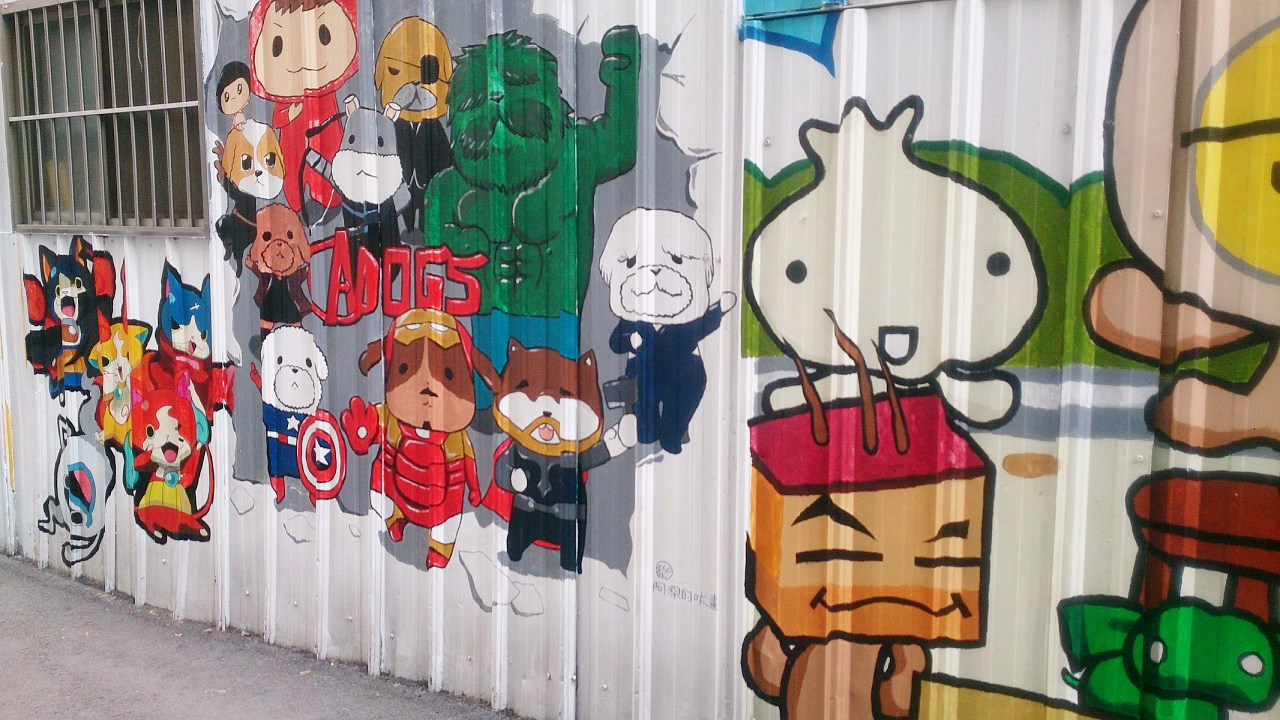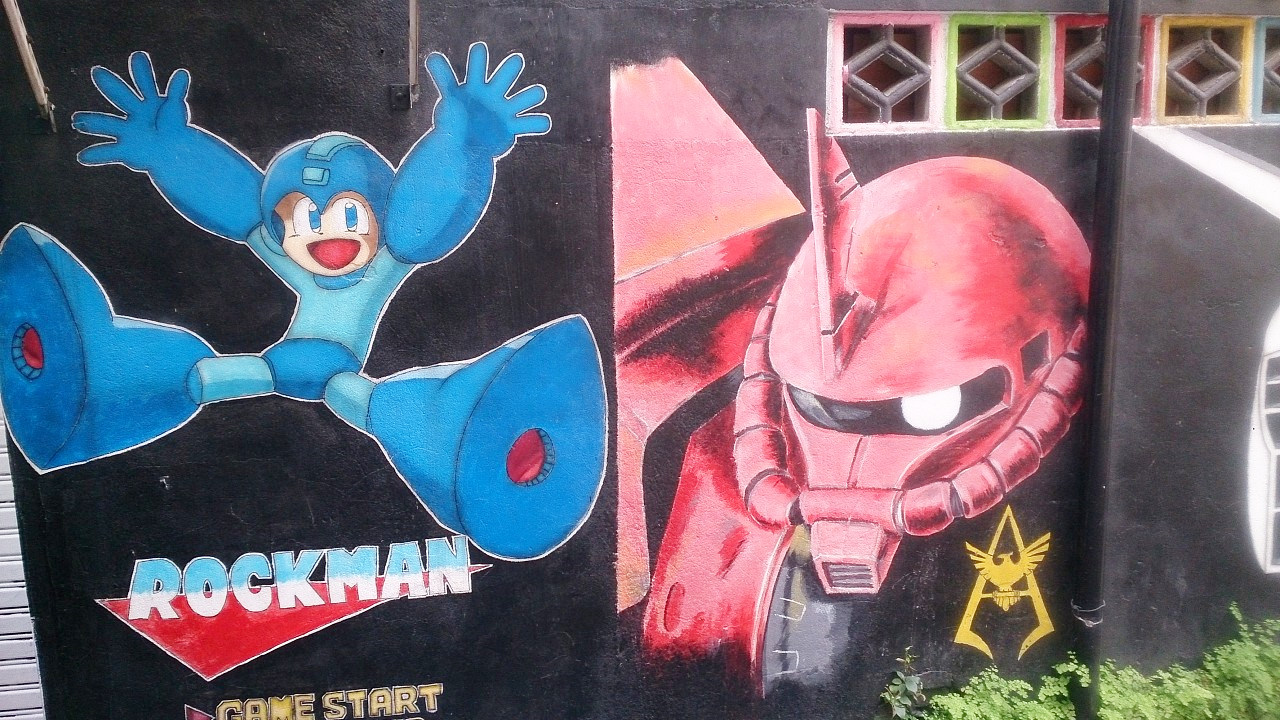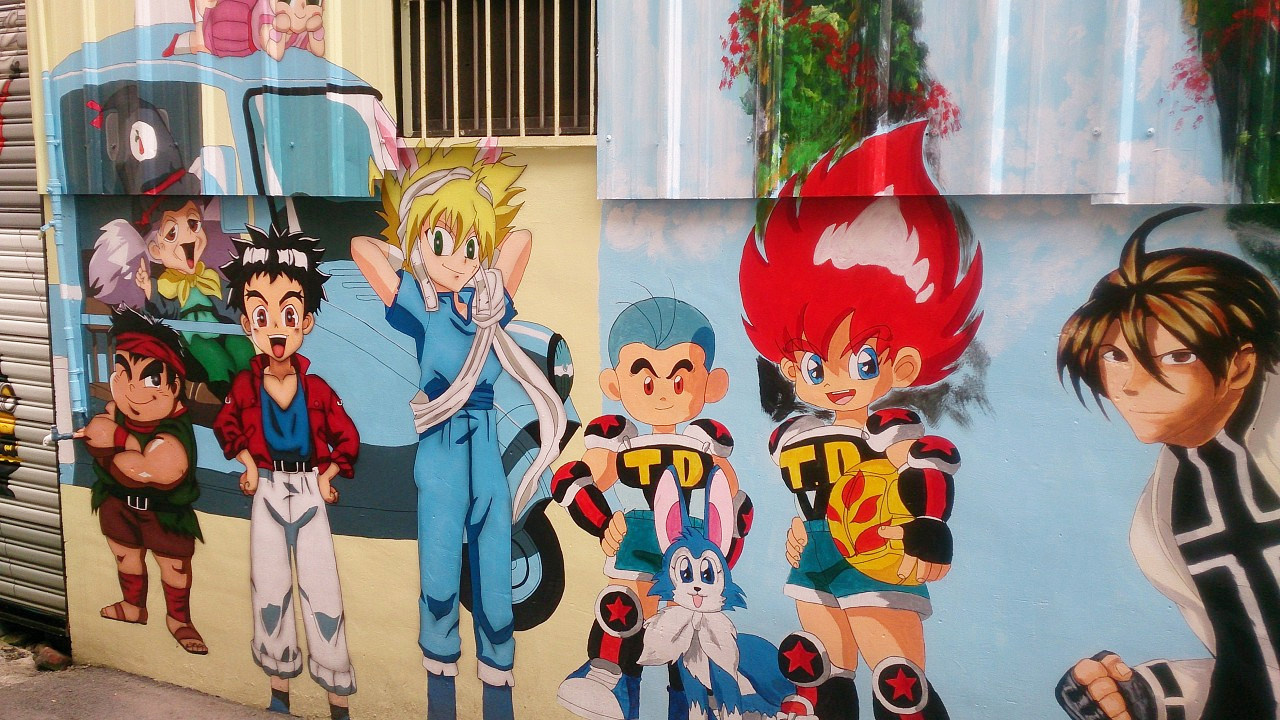 一條各式各樣動漫卡通人物的小巷,以日本漫畫人物為主.
