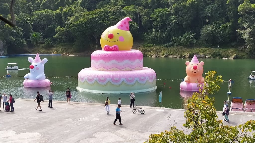 延續去年2019_碧潭-幾米-月亮忘記了的熱潮之後, 今年2020年又再度舊地重遊, 依然有幾米的作品展. 而這次的主題是-向月亮許願, 不僅有白天的山水湖畔相依著, 夜晚的點燈更是不同的觀感, 晚間6點到10點這期間的夜晚光影而點綴其溫暖.