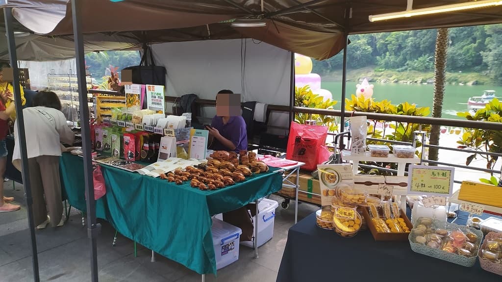 而在湖畔旁的階梯上方, 依舊有些許的活動商家! 儘管不像去年的多, 但仍舊可以買到合適的物品.
